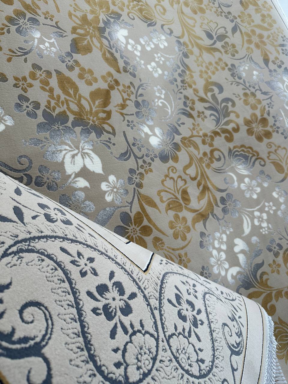 فرش ۱۲۰۰شانه گل برجسته تراکم ۳۶۰۰ طرح گیتا بژ