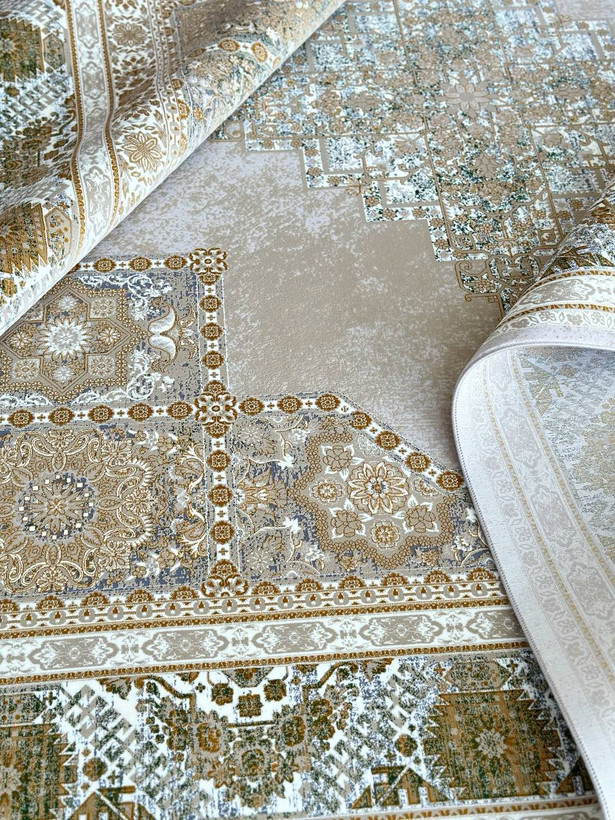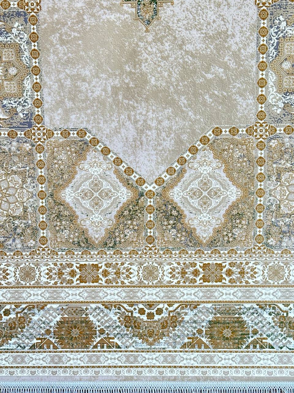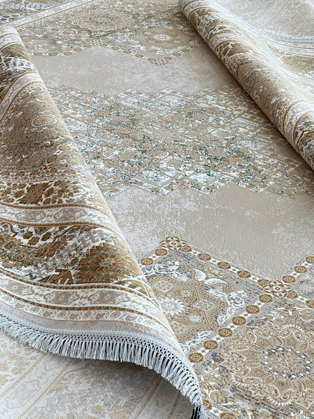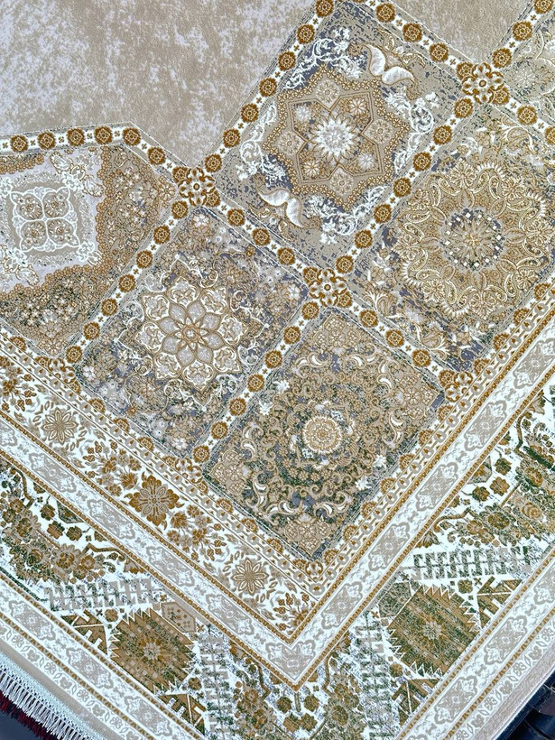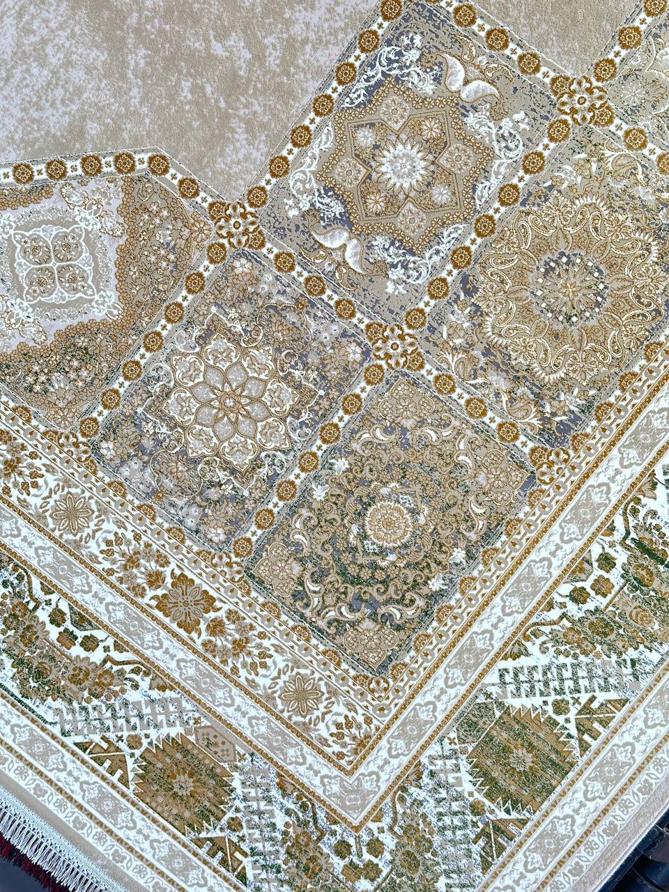 فرش کاشان ۱۲۰۰ شانه تراکم 3600 گل برجسته اکرولیک طرح برکه بژ