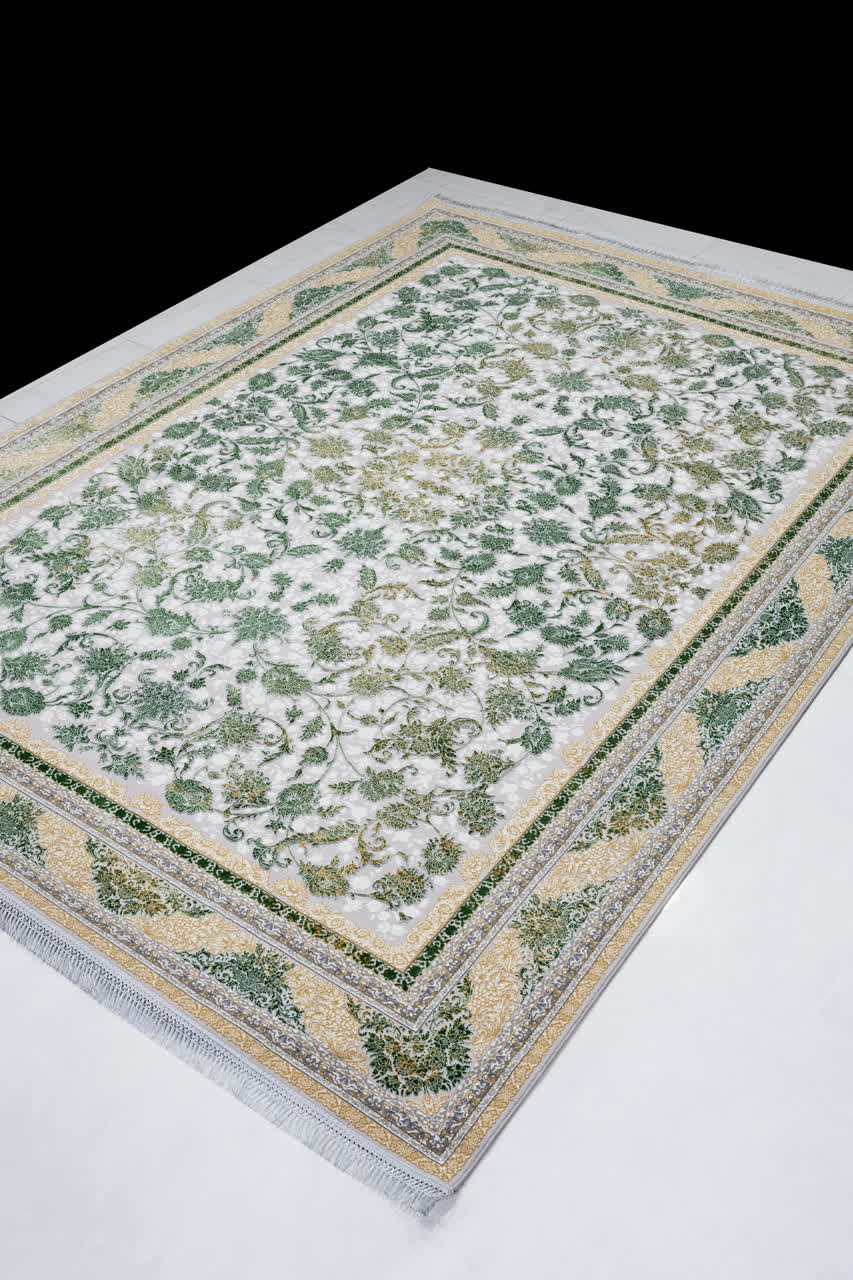 فرش 1200 شانه تراکم 3600 گل برجسته با طراحی جذاب خاب برجسنه و بافتی ظریف، جلوهای بینظیر از هنر اصیل ایرانی را به خانه شما میآورد. فرش 1200 شانه گل برجسته با گلهای رنگی و چشمنواز در زمینه ای شیک، برگرفته از نقشه های مدرن طراحی شده و ظاهری لوکس دارد. استفاده از الیاف اکرولیک اصل با ظرافت بالا در بافت آن، هم دوام بالا و هم لطافت ویژه ای به فرش بخشیده است.
